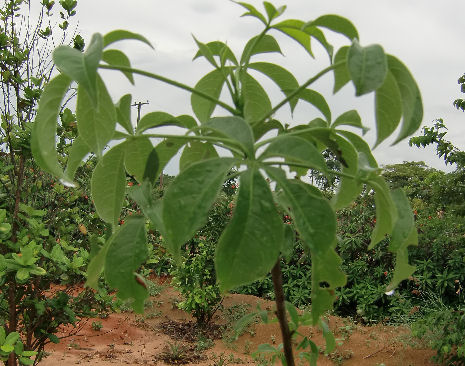 Close-up view of the leaves of Adansonia digitata in December 2010.