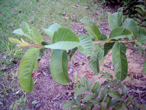 Close-up view of the leaves of the genuine guava in August 2009.