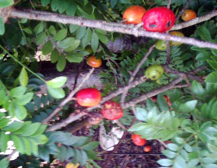 Fruits of the jocote in our garden in March 2009.