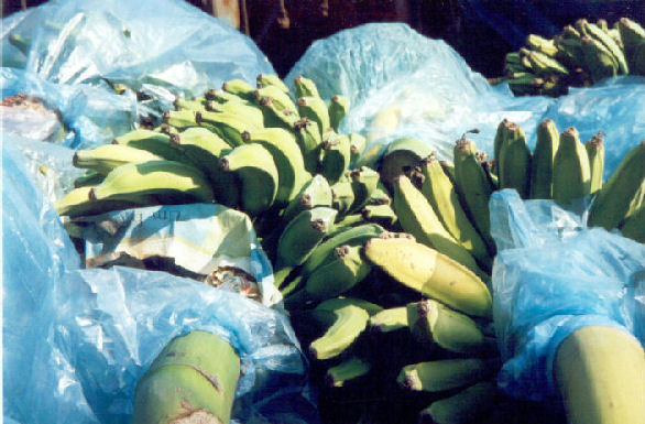 Harvested fruits of Musa 'Nanica' in São Pedro do Turvo in August 2007 (Photo: Joachim Jaeck)