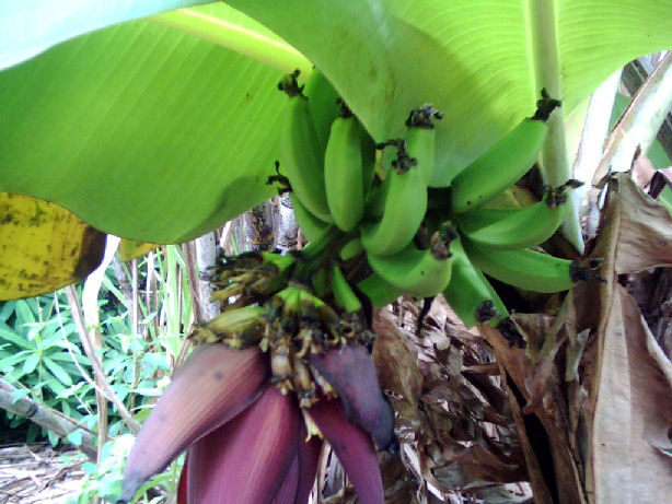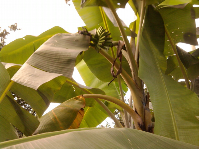 Although one plant in the old stock has already set fruit, but only of poor quality. First in 2011 one of the specimens from newer stocks has set fruit at the pondside, this was of good quality, clearly the conditions are there ideal for growing bananas because of the higher groundwater level. Also one further specimen in the group near of the vegetable garden of Antonio showed fruit formation, clearly it has also found good conditions for that, in the half shadow, with much horse manure and much water.