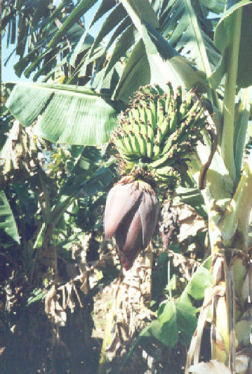 Fruiting specimen of Musa 'Prata' in one yard in Lucianópolis in