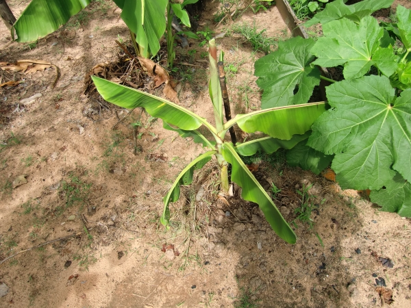Three specimens of the regulary species and one of the provenance Musa sikkimensis 'Manipur' Helton Josué brought me on 16th September 2009 and I planted them on the next day out. Unfortunately they did not well in the sandy soil. In red soil, in Terra Preta and also in the special garden they might thrive much better. In the nursery of Helton Josué in Angatuba there are huge mother plants which are already flowering, fruiting and setting seeds!