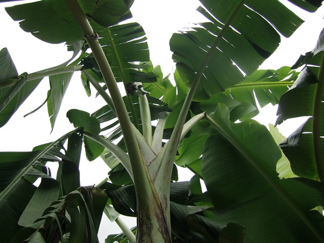 The huge leaves of the super banana from Embrapa on December 10th, 2011.